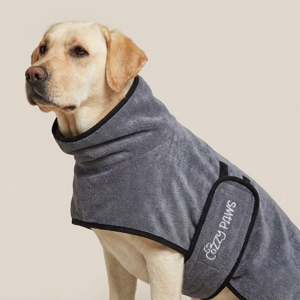 Ultra-absorbant, doux et chaud — le peignoir CozzyPaws sèche votre chien en douceur tout en protégeant votre maison.